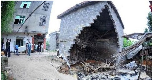 在廣西南寧市西鄉(xiāng)塘區(qū)壇洛鎮(zhèn)壇洛村,地陷致使一幢房屋一角下陷,房屋內(nèi)的一頭牛被埋。1日晚7時(shí)許,壇洛二中校門(mén)口右側(cè)出現(xiàn)地面坍陷下沉約1.5米深、直徑2.5米的陷坑,石埠-壇洛縣級(jí)公路路面附近500米范圍內(nèi)壇洛村所轄馬重、馬六、蘭楊、二甲4個(gè)自然村出現(xiàn)若干處不同程度的沉陷。