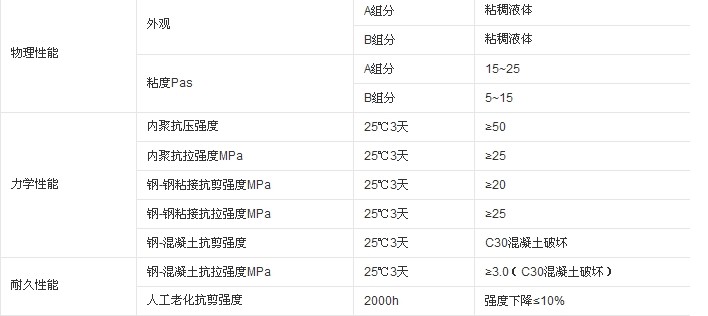 金固牌粘鋼結構膠系A、B雙組分改性環(huán)氧類結構膠,具有粘接力、剪切力強、抗老化、耐介質(酸、堿、水)性能好、抗沖擊性能強,常溫固化、硬化過程收縮小、施工無流淌、不含揮發(fā)性溶劑、無毒以及施工方便等特點。適用范圍:改造工程中混凝土構件外部粘貼鋼板加固。土木工程中各種建筑材料的自粘和互粘。下面介紹一下加固粘鋼膠的基本參數(shù):
