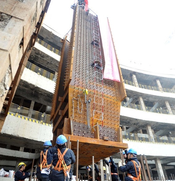 2014年1月4日下午,在建第一高樓武漢綠地鋼結(jié)構(gòu)工程舉行首根鋼巨柱吊裝儀式。據(jù)悉,這意味著世界第三高樓正式進(jìn)入主體結(jié)構(gòu)施工階段。湖北鋼結(jié)構(gòu)公司|http://www.m.bm021.cn在儀式現(xiàn)場設(shè)祭壇,綁活雞祭祀。鋼構(gòu)副總介紹,武漢綠地鋼結(jié)構(gòu)建筑高度為606米,是世界上第三高樓。 本次吊裝的巨柱構(gòu)件高7米,重達(dá)70噸,吊裝用的履帶吊自重300噸,吊裝能力90噸,預(yù)計整個項目用鋼量近8萬噸,屬超高層鋼結(jié)構(gòu)建筑物中的“重量級選手”。
