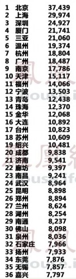 2014年1月全國城市房價(jià)排行榜前10名分別是北京、上海、深圳、廈門、三亞、溫州、杭州、廣州、南京、天津。北京還是居于榜首,而南方城市廈門迎頭趕上位于第四的位置。從1月全國房價(jià)排行榜前100名單可知,1月全國城市房價(jià)排行榜前10名分別是北京、上海、深圳、廈門、三亞、溫州、杭州、廣州、南京、天津。福州房價(jià)以14066元/平方米,位居全國第11,同比上漲15.48%。不少網(wǎng)友悲嘆:房價(jià)直漲何時(shí)才能買得起房!