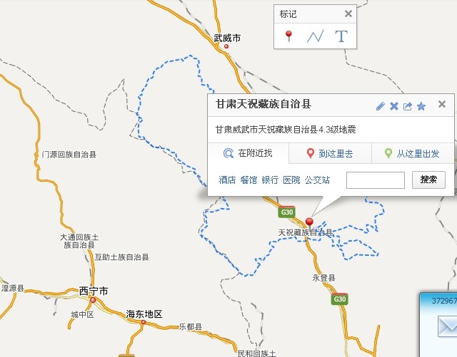 據(jù)中國地震臺網(wǎng)測定,北京時間 2014年2月22日12時56分 在 甘肅省武威市天祝藏族自治縣發(fā)生 4.3 級地震, 震源深度 6 公里。