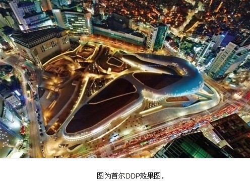 DDP是由有建筑界女皇之稱的英國建筑家扎哈·哈迪德(64)設(shè)計(jì)完成的。該建筑占地6.2692萬㎡,總面積為8.6574㎡,地下有3層地上有4層。DDP內(nèi)設(shè)有藝術(shù)廳、展覽館、設(shè)計(jì)實(shí)驗(yàn)室、創(chuàng)意市場和東大門歷史文化公園五部分,共有15個(gè)可用于市民接受文化熏陶的場所。