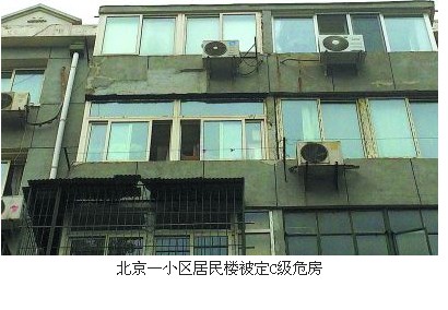 去年全市老舊小區(qū)改造時,曾有兩家專業(yè)機(jī)構(gòu)對1號樓進(jìn)行了抗震鑒定,均指出該樓存在險情,但是在評級結(jié)果上出現(xiàn)了分歧。去年10月,中國建筑科學(xué)研究院對1號樓再次進(jìn)行結(jié)構(gòu)鑒定,1號樓的安全性等級為C級,靜力承載力和抗震承載力均不滿足要求,需立即進(jìn)行相應(yīng)加固處理!昂唵握f就是C級危房,這和浙江奉化倒塌的居民樓級別是一樣的!睋(jù)了解,C級危房即房屋局部結(jié)構(gòu)出現(xiàn)險情,有局部倒塌破壞的可能。這一結(jié)果出來后,1號樓被納入到朝陽區(qū)2014年老舊小區(qū)加固改造計劃之中。