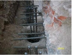 樹根樁是一種小型鉆孔灌注樁,直它是利用小型鉆機按設(shè)計直徑,鉆進(jìn)至設(shè)計深度,然后放入鋼筋籠,同時放入灌漿管,注入水泥漿或水泥砂漿,結(jié)合碎石骨料成樁。樹根樁可以根據(jù)需要,做成垂直的,也可以是傾斜的,可以是單根的,也可以是成束的,可以是端承樁,也可以是摩擦樁。
