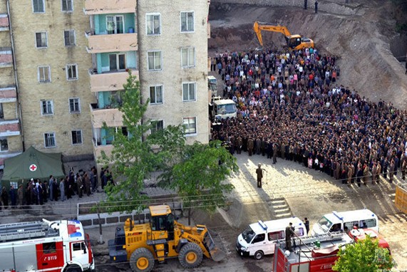 朝鮮18日罕見地報道一起上周發(fā)生在首都平壤的“嚴重”事故:一座在建高層公寓樓坍塌加固,造成人員傷亡;因平壤市平川區(qū)公寓施工質(zhì)量低劣、工作人員監(jiān)管不力,本月13日發(fā)生嚴重崩塌事故,造成大量人員傷亡。但報道沒有透露事故發(fā)生的具體背景和人員傷亡數(shù)字。多名高級官員則罕見地面對民眾公開道歉。朝鮮中央通訊社當天播發(fā)英文報道,事故13日發(fā)生于平壤市平川區(qū),原因是施工草率,一些干部監(jiān)管不力,且態(tài)度不負責任。報道沒有提及傷亡人數(shù)。平壤市黨委責任書記金秀吉說,最高領導人金正恩元帥接到關于事故的匯報后,“心如刀割,徹夜未眠”,指示黨、國家和軍隊領導干部撇開一切其他工作,趕赴事發(fā)現(xiàn)場指揮搶救行動,以盡早從損失中恢復過來。