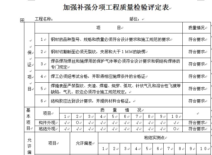 加固補(bǔ)強(qiáng)分項(xiàng)工程質(zhì)量檢驗(yàn)評(píng)定表