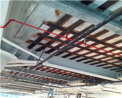 廣西金固建筑特種專業(yè)資質(zhì)加固公司 http://www.m.bm021.cn當鋼筋網(wǎng)布置得當時,建筑鋼筋工程中可能出現(xiàn)一條以上的傾斜彎曲剪切裂縫。當荷載增大到一定值時,在多條彎曲剪切裂縫中會形成一條較大的斜裂縫,稱為臨界斜裂縫。在臨界斜裂縫出現(xiàn)后,梁可以繼續(xù)增加荷載。最后,箍筋屈服,剩余部分收縮,頂部混凝土被壓碎和破壞。損傷部位可見許多平行的短裂縫和混凝土渣。