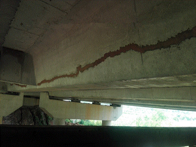 對于溫度裂縫的修復,因溫度裂縫一般寬度較大,且以周期性活動裂縫居多,可采用粘度低、粘結性好、彈性模量較小且柔性較好的結構膠灌注,然后根據構件內力計算,對構件進行外部粘貼纖維法加固。
